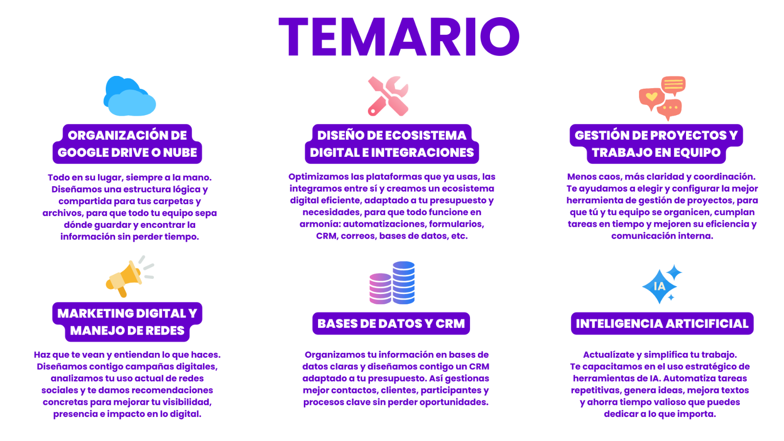 Este programa está diseñado para organizaciones, colectivas, centros de atención y empresas lideradas por mujeres que buscan fortalecer sus capacidades digitales para crecer, ahorrar tiempo, organizarse mejor y sostenerse en el camino.